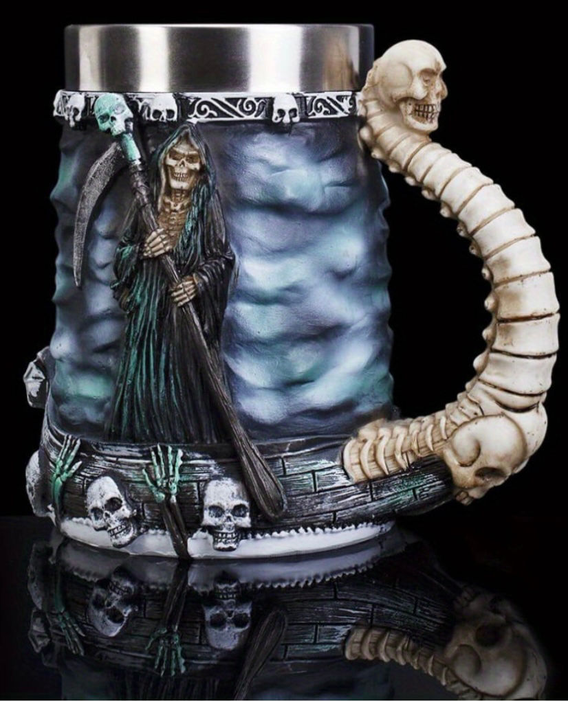 Death Grim Reaper Coffee Mug - 20oz Stainless Steel & Resin Horror Themed Cup, H